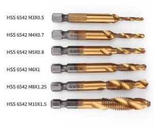 – Seis mechas/machos milimétricos con baño de titanio encastre de 1/4″.