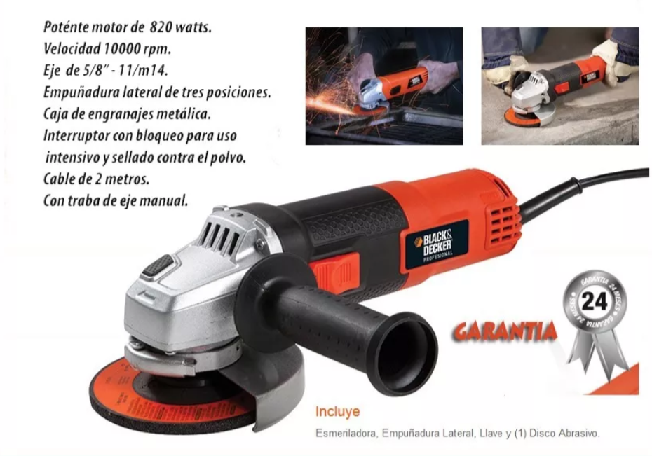 BLACK & DECKER AMOLADORA 115MM 820W