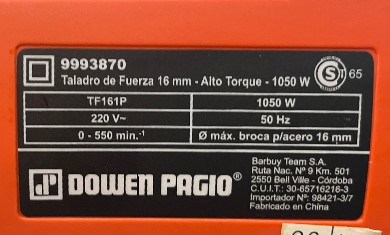 DOWEN PAGIO TALADRO ROTACION 16 MM VELOCIDAD VARIABLE TF 161 P