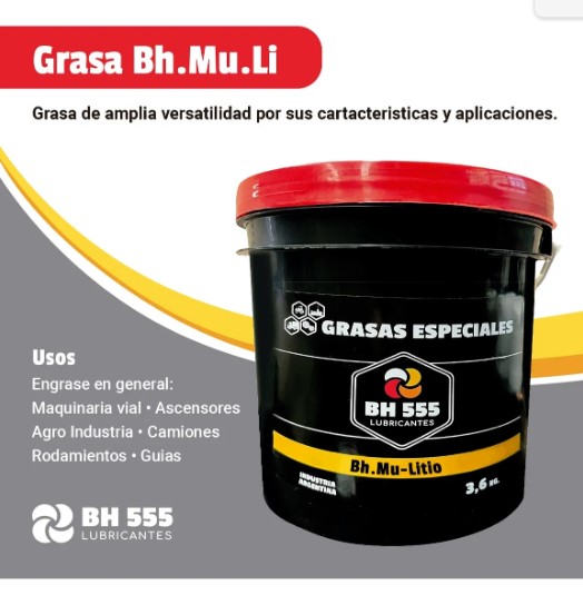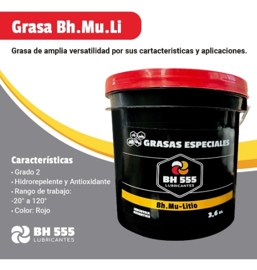 La BH 555 MU-LI es una GRASA DE LITIO MULTIUSO ROJA NLGI 2, diseñada para aplicaciones de engrase general en automóviles, maquinaria agrícola, industrial y de la construcción. Es un producto de ALTA PERFORMANCE y PRECIO COMPETITIVO, porque llega directo de fábrica al usuario, sin intermediarios.